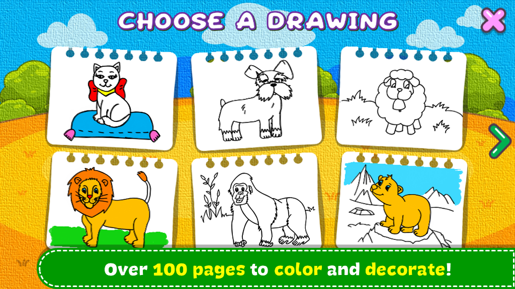 Lleno de herramientas de dibujo y pintura divertidas, coloridas y creativas que ayudan a los niños de todas las edades a divertirse creando arte en su dispositivo móvil.